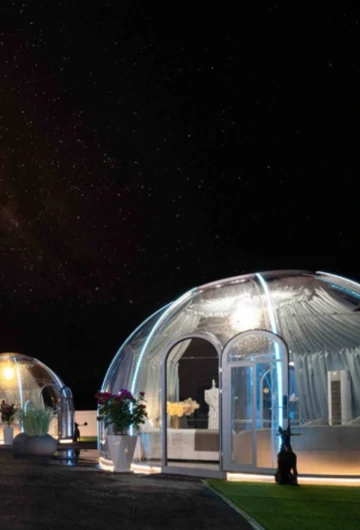 The φ3.5-5.0pro Model of the Starry Sky Room Series represents the pinnacle of pro-grade luxury and adaptive innovation, spanning 3.5 to 5 meters in diameter to cater to diverse high-end needs. Built with a hybrid aerospace-grade aluminum-titanium frame and quadruple-layered PC panels featuring self-healing nano-coating and dynamic light filtration (adjusting transparency from 10% to 95% via app), it balances rugged durability (120 km/h wind resistance) with uninterrupted panoramic views.